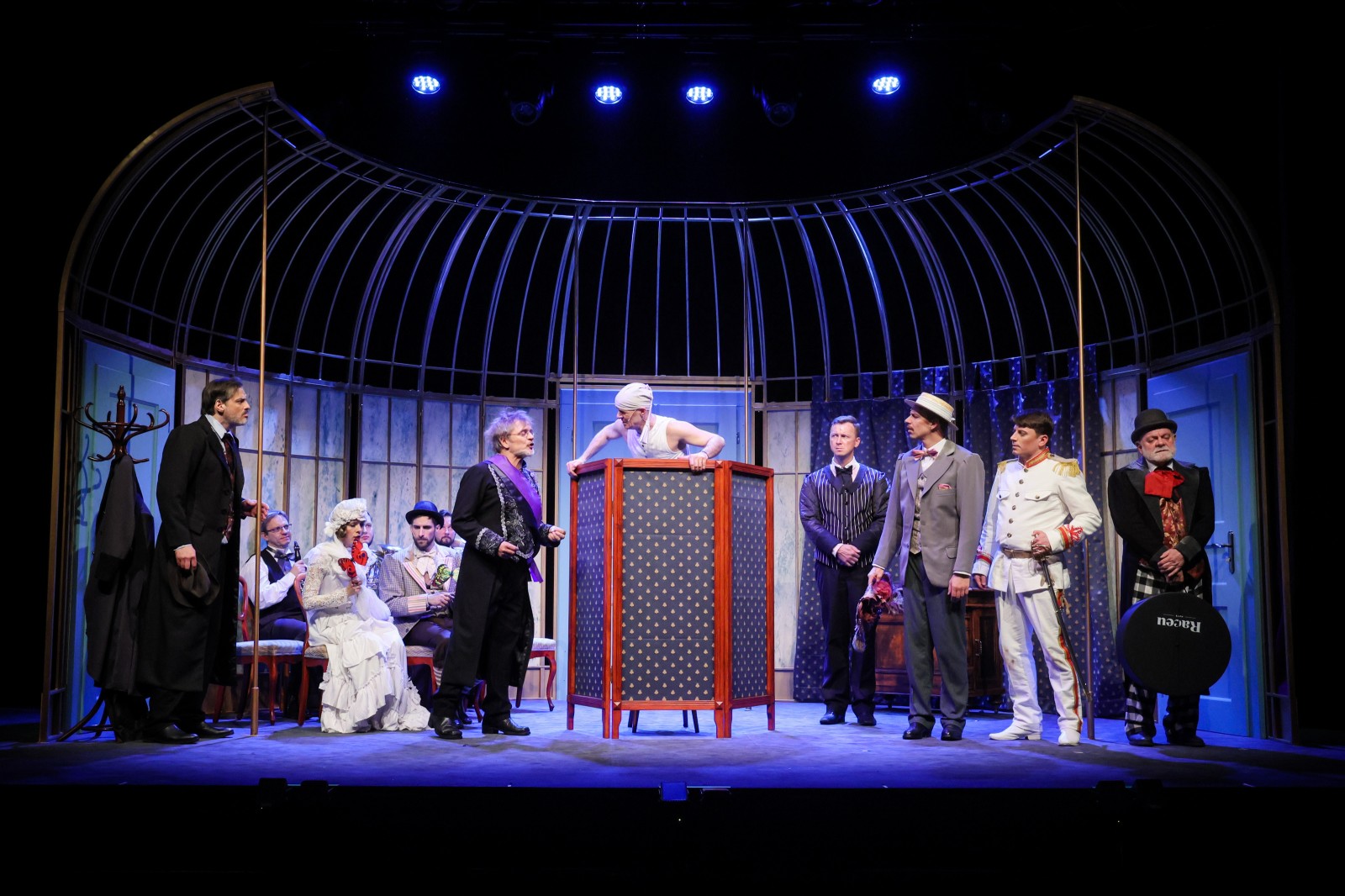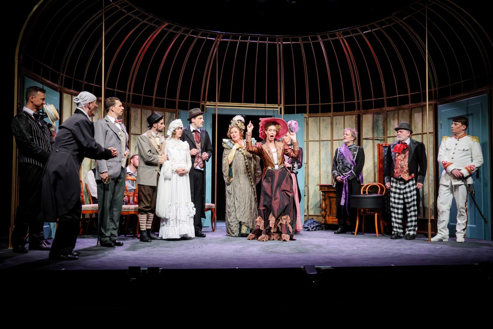 Kostýmy pro inscenaci navrhl Josef Jelínek a režii zastřešil Václav Knop. Filmová předloha, legendární komedie Oldřicha Lipského z roku 1971, byla natočena podle scénáře Eugèna Labiche v adaptaci Miloše Macourka. Tehdejší hvězdné obsazení tvořili Iva Janžurová, Miloš Kopecký, Vladimír Menšík, Květa Fialová, Pavel Landovský, Stella Zázvorková, Josef Kemr a další.