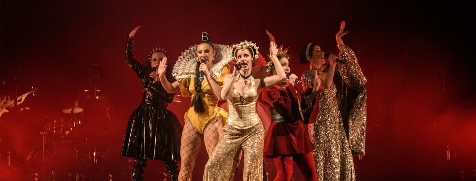 Čeká vás oslnivá osmdesátiminutová hudební bitva, kde se představí šest fenomenálních interpretek, doprovázených čtyřčlennou ženskou kapelou. Chytlavé melodie, které uchvátily fanoušky po celém světě a přinesly muzikálu Six desítky prestižních ocenění, vás vtáhnou do děje. Moderní, energické a provokativní představení boří žánrové hranice a nadchne především mladou a střední generaci. Tento extravagantní mix muzikálu, popového koncertu a historických faktů si prostě nemůžete nechat ujít!